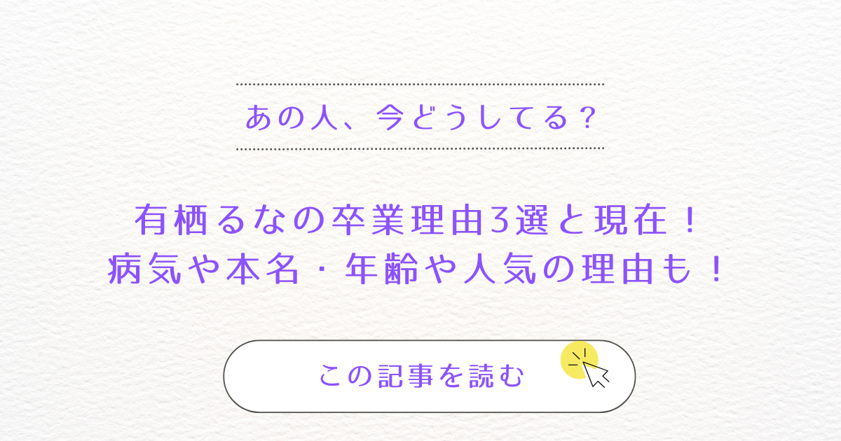 「約半年の休養期間の間に自分自身を向き合い、将来を見据え考えた結果として、有栖本人よりグループ卒業の申し出がありました。この度はその意向を尊重する形とし、今回のご報告に至りました」と卒業となった経緯を明かした。