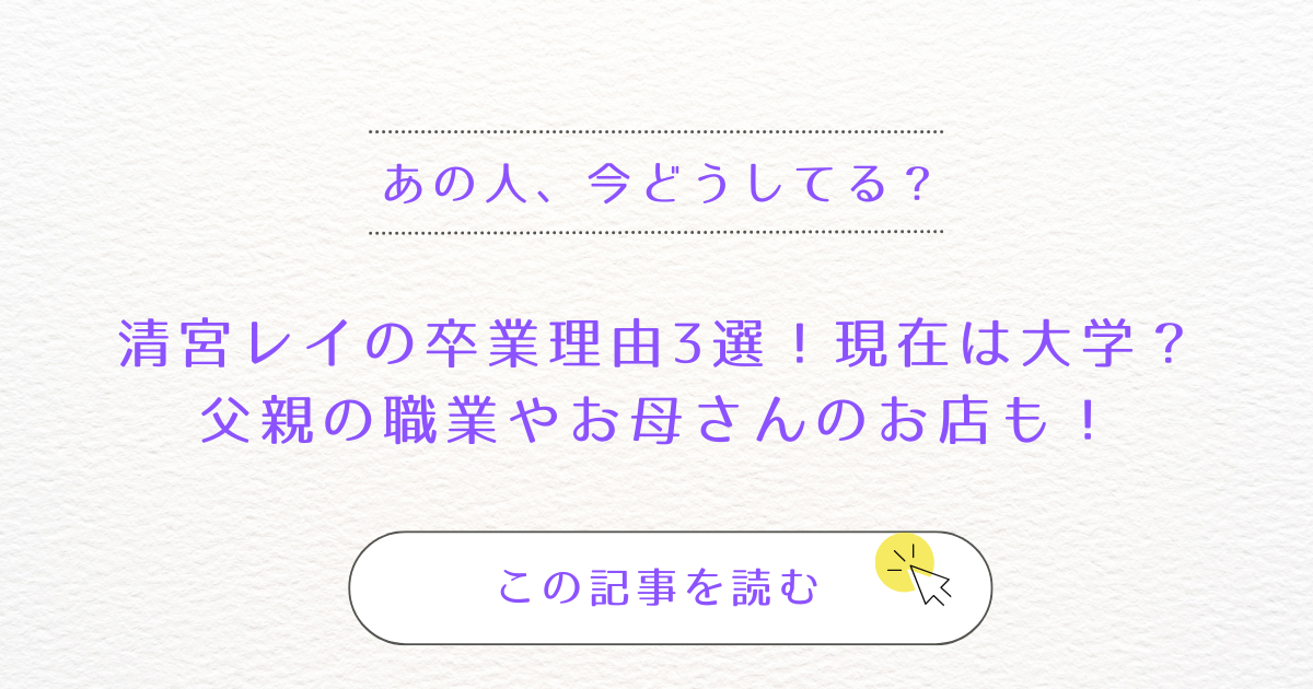 清宮レイさんは20歳の節目を迎えた際、自身の公式ブログで「二十歳の区切りに、新しい世界に挑戦してみようと決心しました」と卒業の理由を明かしています。