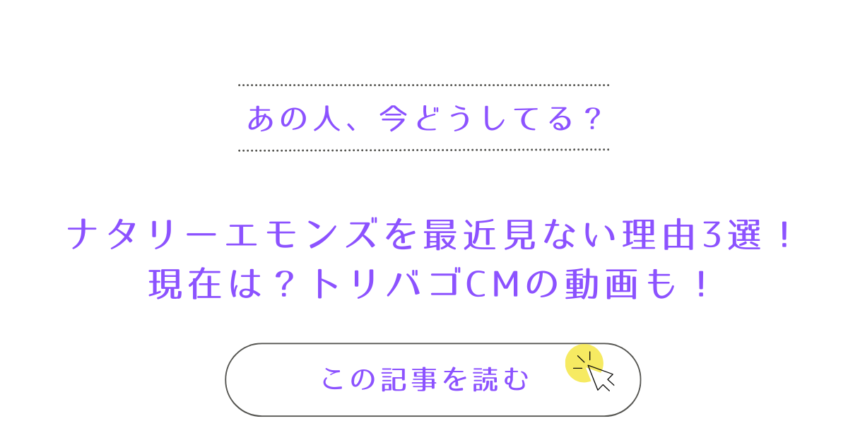 しかし最近はテレビやCMで見かける機会が減り、「ナタリーエモンズってどうして最近見ないの?」と感じる方も多いのではないでしょうか。