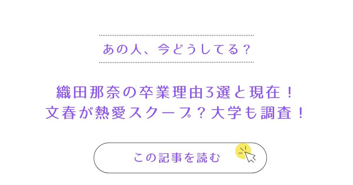 ここからは、織田那奈さんの活動休止からの卒業の原因にもなった熱愛結婚について詳しくお伝えしていきたいと思います。