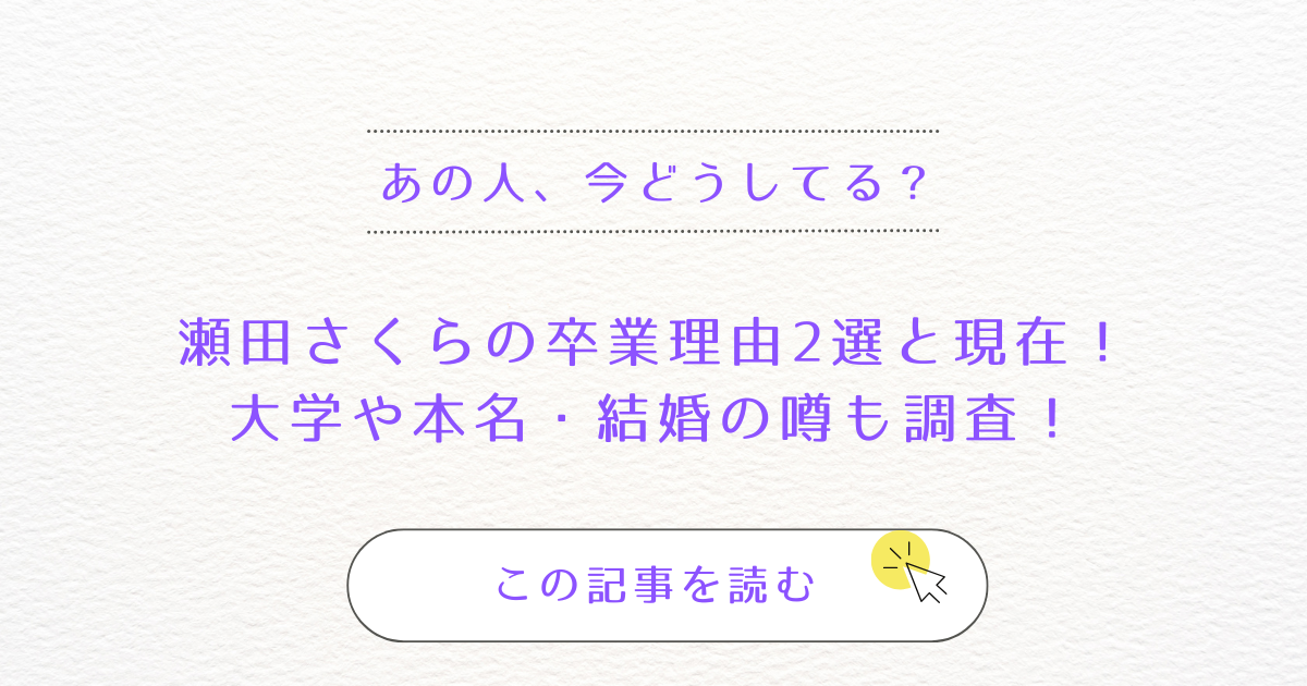 ここからは、瀬田さくらさんの卒業理由2つについてお伝えしていきます。